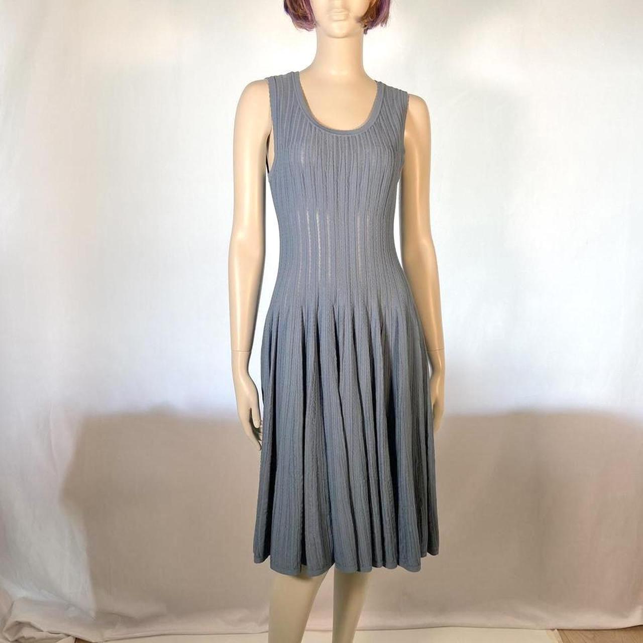 Azzedine Alaïa Blue ribbed scallop edge flared dress